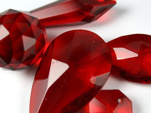 Cristallo molato con forma a ottagono sfaccettato con taglio 16 facce color rosso.