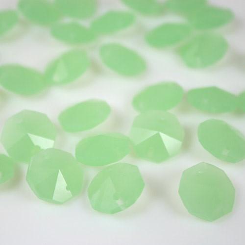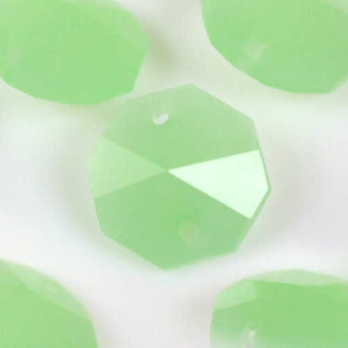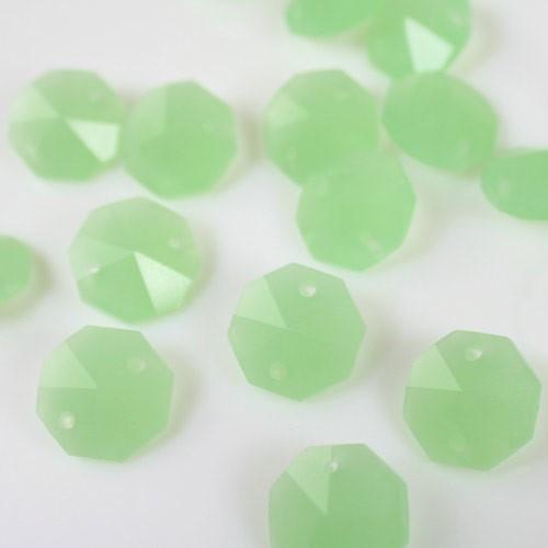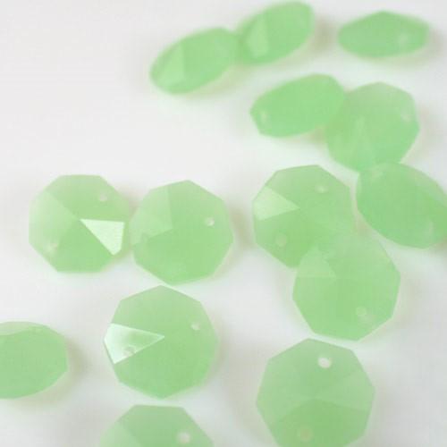 Ottagono 14 mm verde seta vetro cristallo molato 16 facce 2 fori.