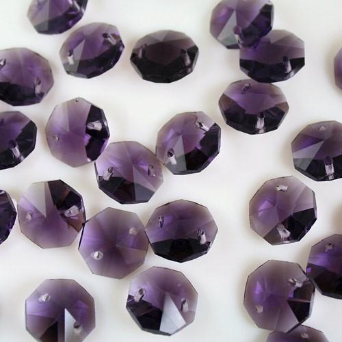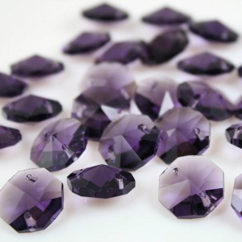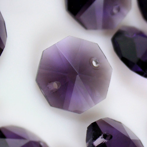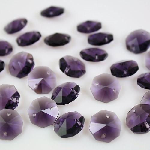 Ottagono 14 mm viola vetro cristallo molato 16 facce 2 fori.