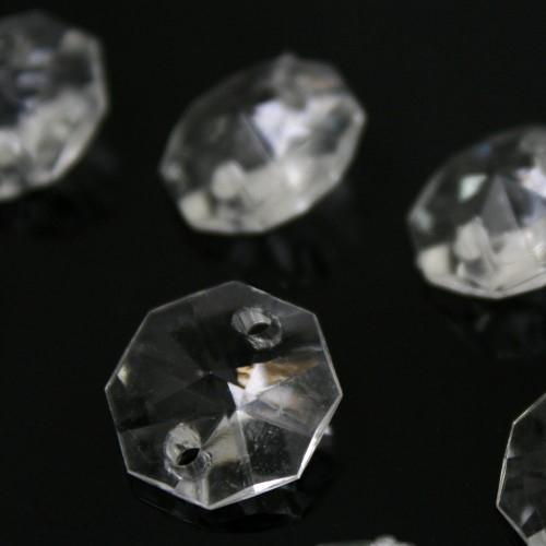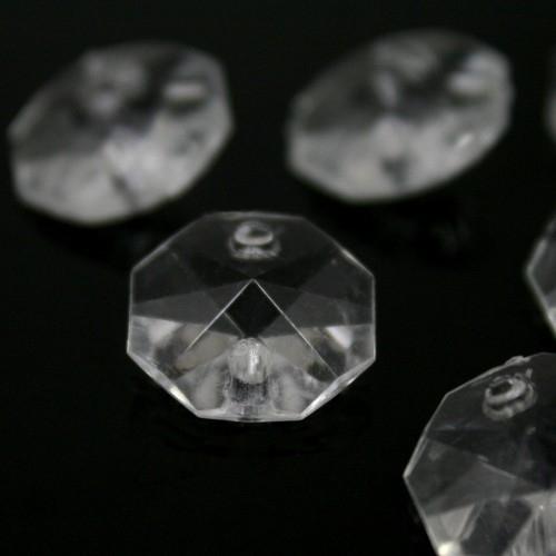 Ottagono 14 mm, cristallo acrilico sfaccettato 2 fori, colore puro