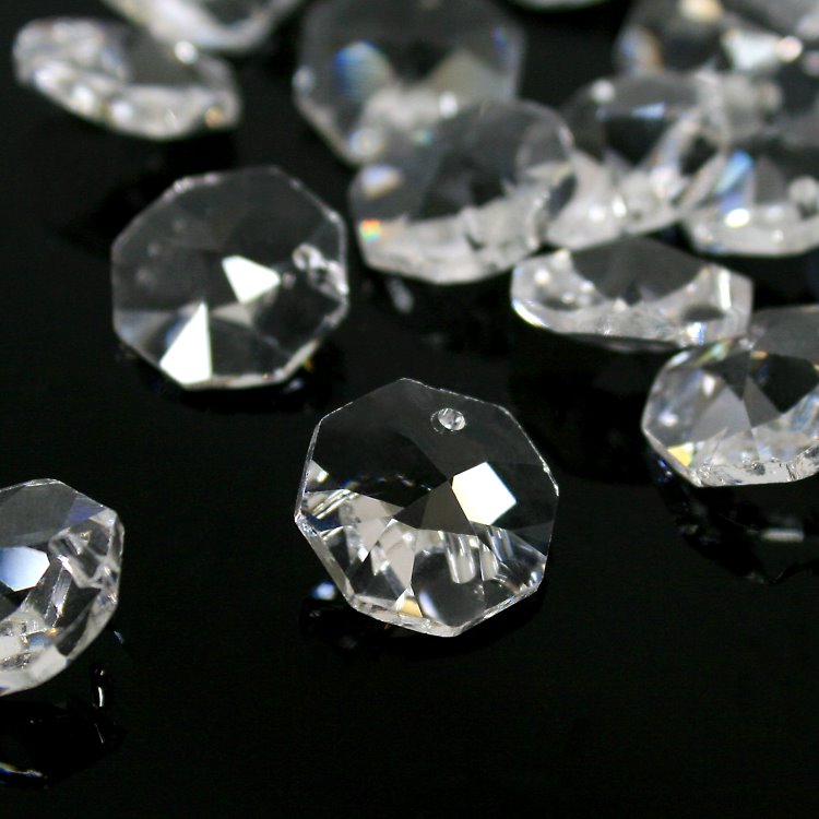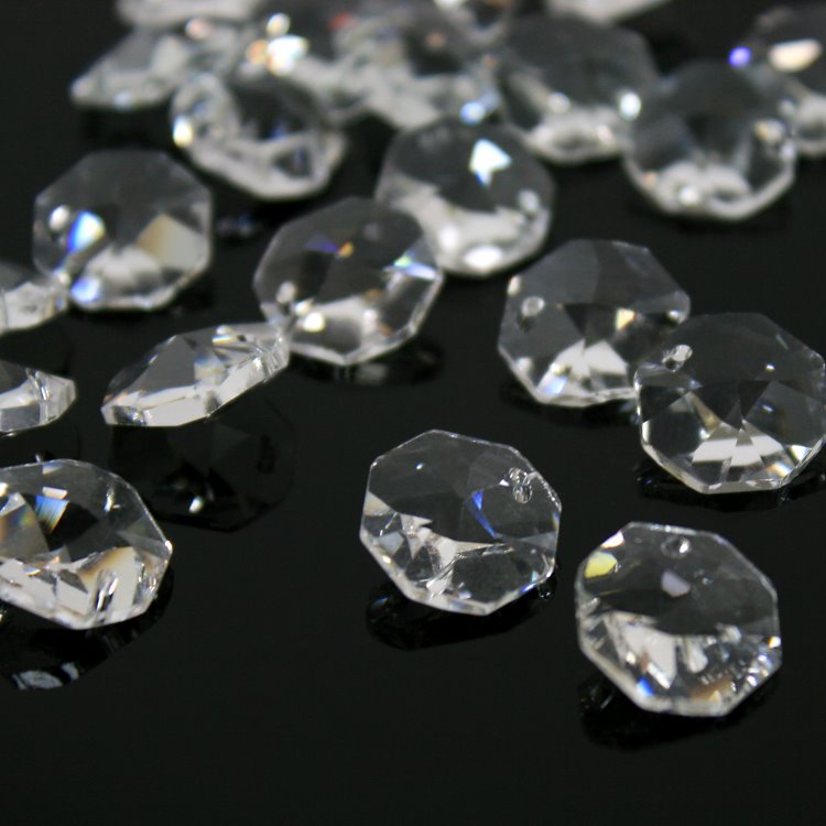 Cristallo ottagono 18mm in cristallo al piombo 30% sfaccettato e molato.Il pendente è dotato di 2 fori per l'inserimento di spilli, anelli o gancetti per la creazione di ghirlande, catene e composizioni. Sono componenti di alta qualità selezionata, utilizzabili per la creazione e il restauro di lampadari e illuminazione, ma anche per allestimenti per interior design, composizioni floreali, decorazioni natalizie, tende di luce e separè.
