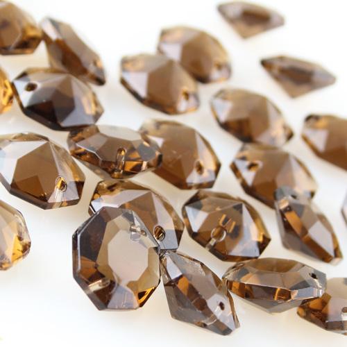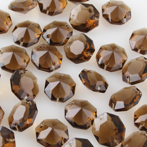 Ottagono 20 mm cristallo puro di Boemia colore marrone fumè, 2 fori