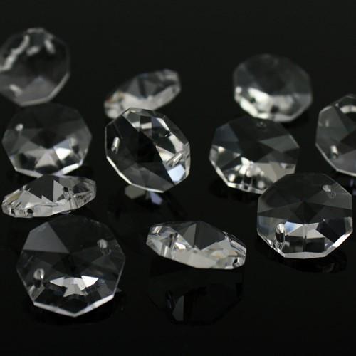 Ottagono 20 mm trasparente puro cristallo vetro molato 2 fori 16 facce