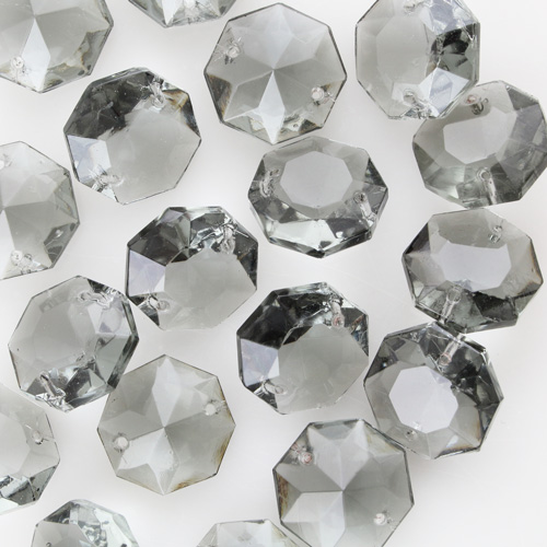 Cristallo a forma di ottagono in vetro veneziano colore grigio puro con diametro di 22 millimetri, fattura brillante e pulita che permette alla luce che vi passa di creare magnifici riverberi luminosi, dotato di 2 fori passanti per la creazione di bijoux, bracciali, collane, braccialetti e bigiotteria.