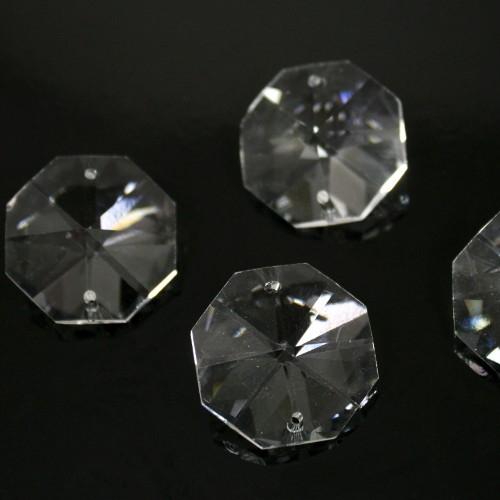 E' realizzato in cristallo molato con alto grado di brillantezza. Questo ottagono ha doppio foro per poter creare catene di cristalli mediante l'inserimento della clip o gancetto (controllail vasto assortimento nella sezione dedicata ad agganci, clip, spilli e minuterie).