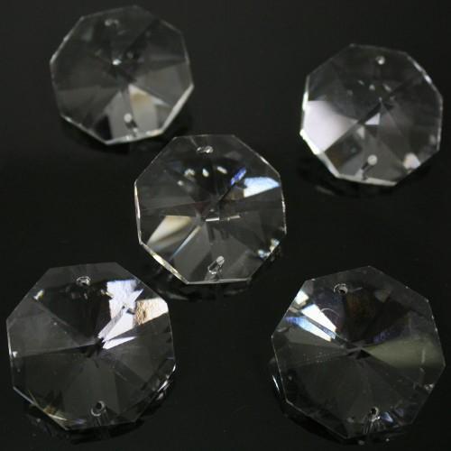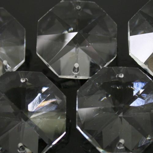Ottagono 30 mm trasparente puro cristallo vetro molato 2 fori 16 facce