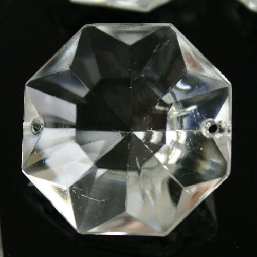 Gli ottagoni in cristallo veneziano proposti hanno diametro di 30 mm, la loro fattura brillante e pulita permette alla luce che vi passa attraverso di creare magnifici riverberi luminosi.