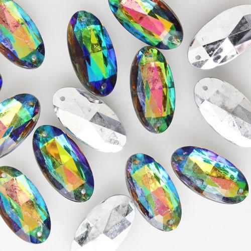 Ovalino a due fori 34 mm color iridato - Cristallo Vetro veneziano perla per lampadari