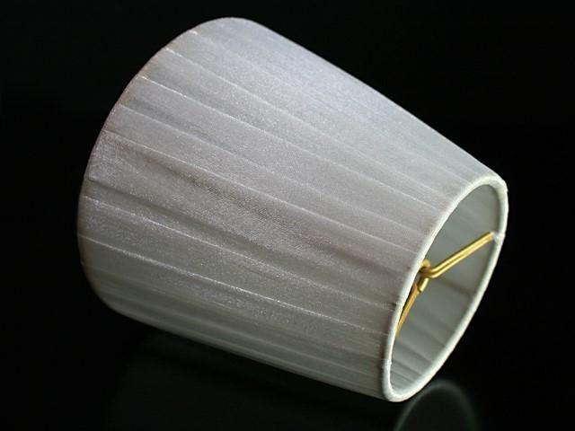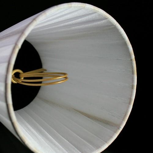 Paralume Ø12 Ø8 h11 cm tronco conico rivestito da velo siena bianco. Montatura oro a molla.