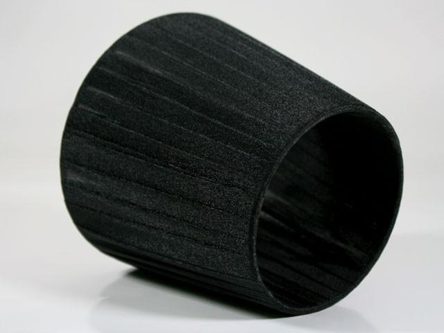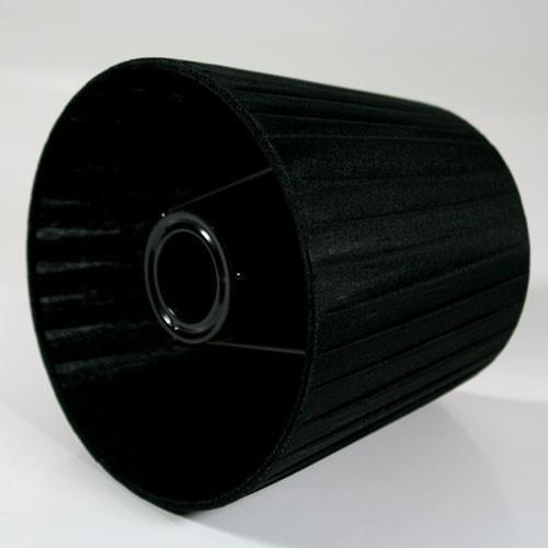 Paralume artigianale tronco cono con attacco standard E14. Il paralume ha telaio color nero, rivestito in materiale Velo Siena (organza) nastrato color nero.