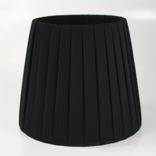 Paralume tronco conico rivestito da organza colore nero, 14 Ø inferiore, 10 Ø superiore, H. 12 cm. Montatura argento.