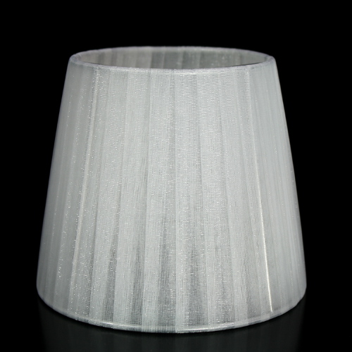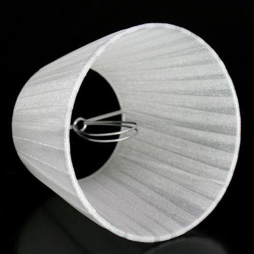 Paralume 14x10x12 cm tronco conico rivestito da organza avorio. Montatura argento attacco a molla.