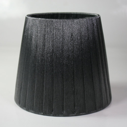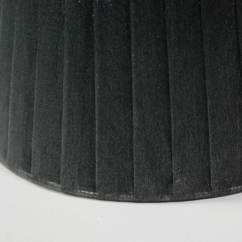 Paralume tronco conico rivestito da organza grigio scuro, 14 Ø inferiore 10 Ø superiore h. 12 cm. Montatura argento attacco a molla.