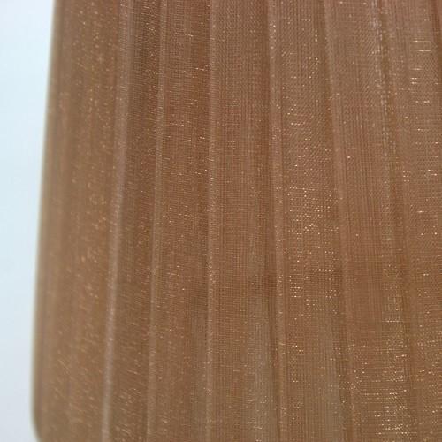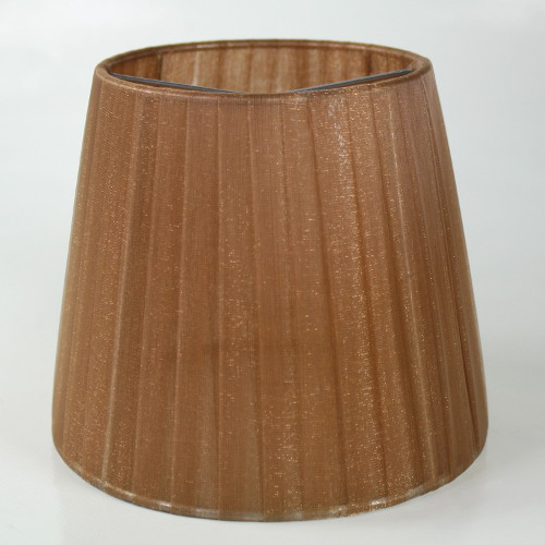 Paralume 14x10x12 cm tronco conico rivestito da organza marrone chiaro. Montatura argento attacco a molla.
