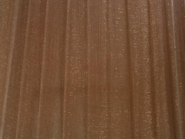 Il paralume è realizzato a mano ed è interamente ricoperto di organza nastrata velo di Siena, color marrone chiaro.