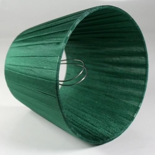 Paralume tronco conico rivestito da organza verde scuro, 14 Ø inferiore 10 Ø superiore h. 12 cm. Montatura argento attacco a molla.