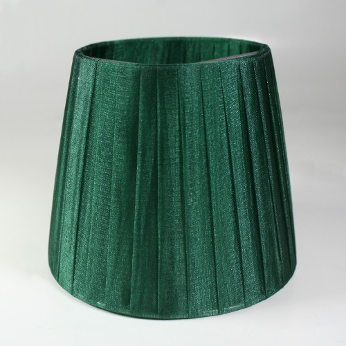 Paralume 14x10x12 cm tronco conico rivestito da organza verde scuro. Montatura argento attacco a molla.