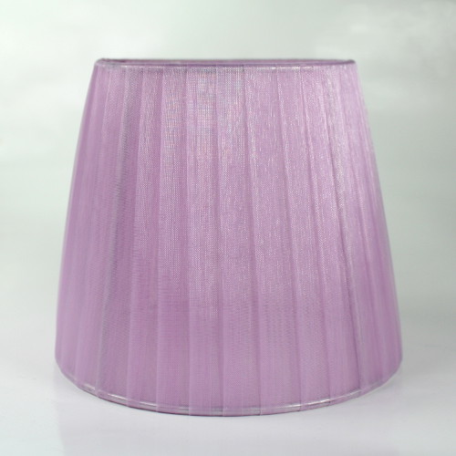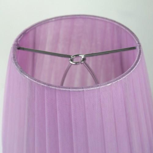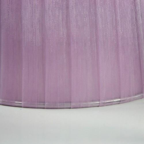 Paralume artigianale tronco cono con attacco universale a molletta. Il paralume è artigianale, ha il telaio color argento ed è rivestito in materiale Velo Siena (organza) nastrato di colore viola alessandrite.