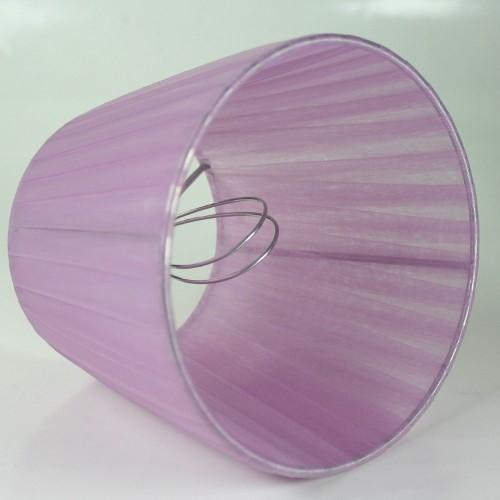 Paralume 14x10x12 cm tronco conico rivestito da organza viola alessandrite. Montatura argento attacco a molla.