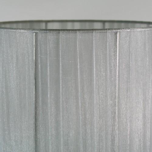 Il paralume ha telaio color argento, rivestito in elegante materiale Velo Siena (organza) nastrato color argento.