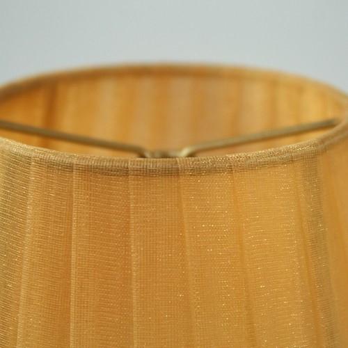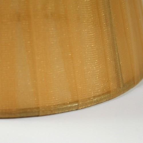 Paralume Ø12 Ø8 h10 cm tronco conico rivestito da velo organza ambra. Montatura oro a molla.