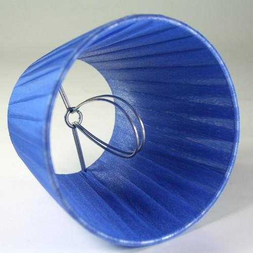 Paralume tronco conico rivestito da velo organza blu zaffiro, Ø12 Ø8 h10 cm. Montatura argento a molla.