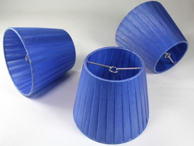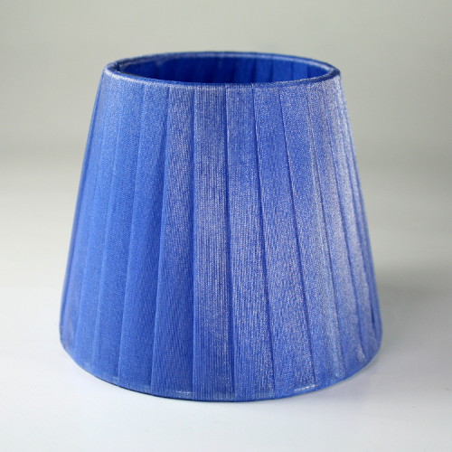 Paralume Ø12 Ø8 h10 cm tronco conico rivestito da velo organza blu zaffiro. Montatura argento a molla.