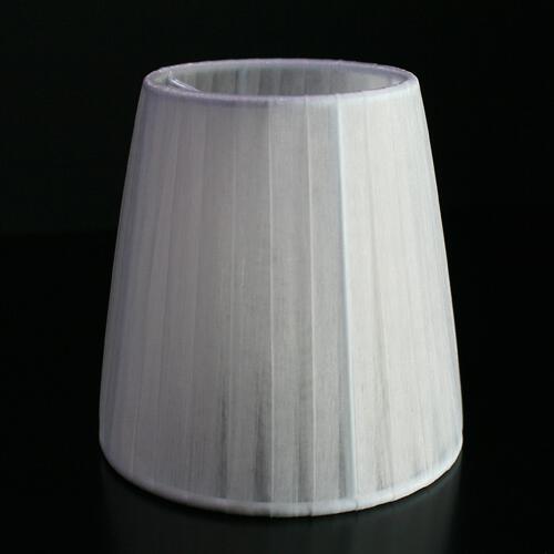 Paralume Ø12 Ø8 h12 cm tronco conico rivestito da velo siena bianco. Montatura bianca a molla.