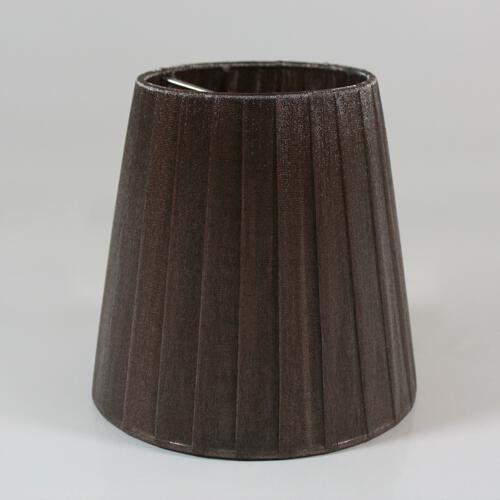 Paralume Ø12 Ø8 h12 cm tronco conico rivestito da velo siena marrone. Montatura nikel a molla.