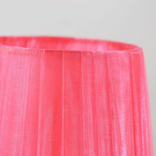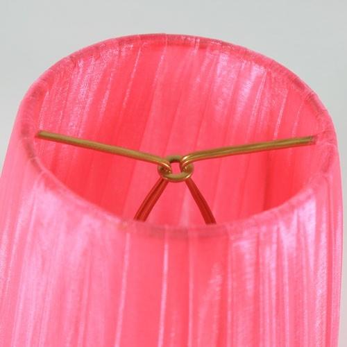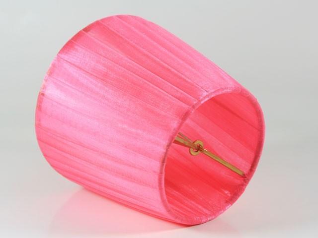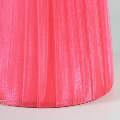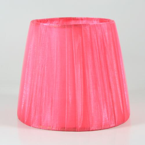 Paralume 14x10x12 cm tronco conico rivestito da organza rosa fuxia. Montatura oro a molla.