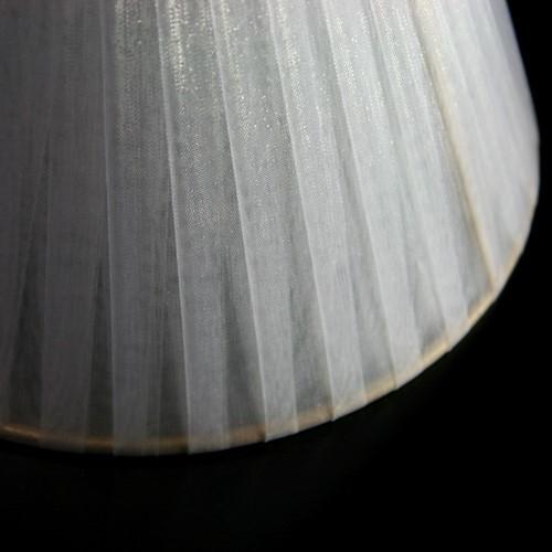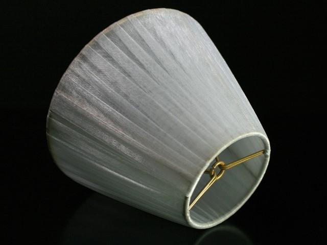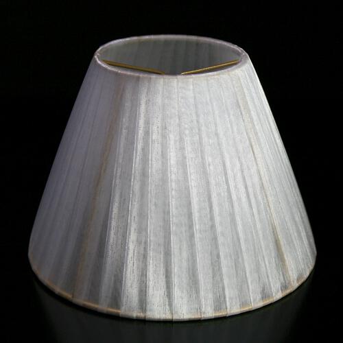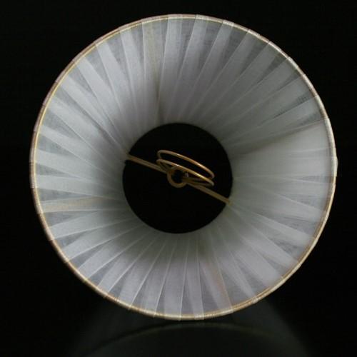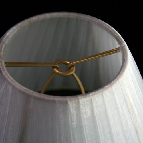 Paralume Ø16 Ø8 h12 cm tronco conico rivestito da velo siena organza bianco. Montatura oro a molla.