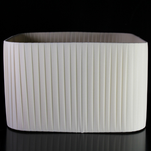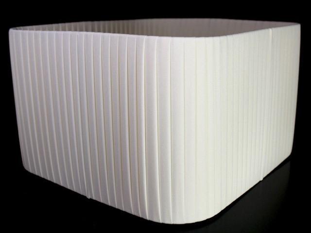 Paralume quadrato 30x30x18 cm rivestito in pongè nastrato color avorio. Montatura bianca attacco E27