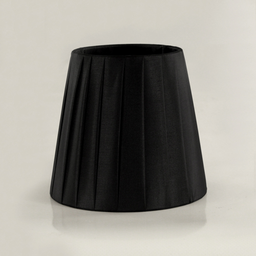 Paralume tronco cono con attacco E14, altezza 12 cm, Ø inferiore 13 cm, Ø superiore 9 cm. Il paralume ha un telaio metallico di colore bianco ed è rivestito in tessuto cotonette plissettato di colore nero. L'articolo è una alternativa economica rispetto ai paralume artigianali made in Italy, ha un prezzo imbattibile e viene venduto pronto per essere montato su qualsiasi tipo di apparecchio luminoso (lampada, lampadario, piantana, etc.). Non è possibile la personalizzazione su richiesta del cliente, ma il prodotto è disponibile nel sito anche in altre dimensioni e colori.