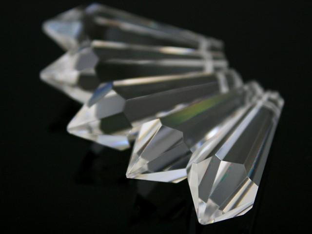 Pendaglio prismatico 38 mm in cristallo al piombo 30% sfaccettato e molato.Il pendente è dotato di foro per l'inserimento del relativo spillo o gancetto presenti nella sezione "Agganci clip e minuterie". Sono opere utilizzate, oltre che per illuminazione e opere di luce, anche per decorazioni o confezioni e per la realizzazione di addobbi e pendaglierie.Il prezzo vale per un unico pendente in cristallo.