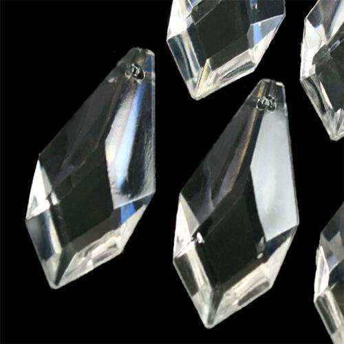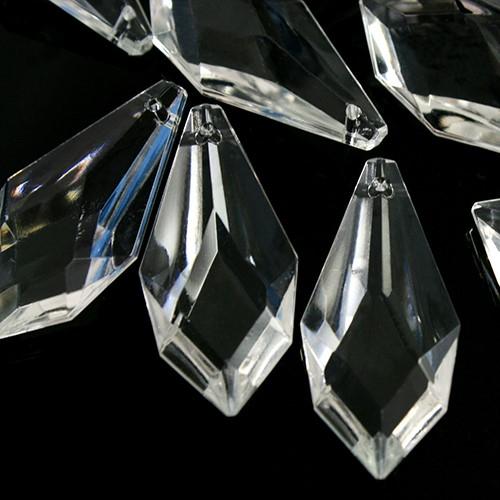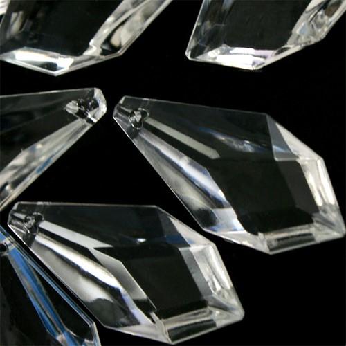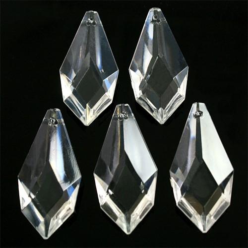 Pendente in puro vetro cristallino veneziano, di altezza 38 mm, caratterizzato da forma definita "a pesce", la cui gemma è dotata di foro in cima per l'inserimento del relativo spillo o gancetto. Opere di questo tipo possono essere usate per illuminazioni, restauri e opere di luce, ma anche per realizzare decorazioni, confezioni, addobbi o monili.