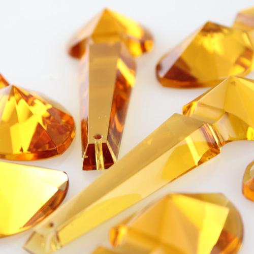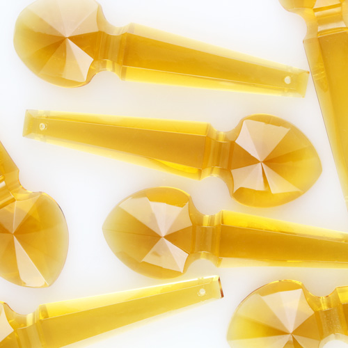 Pendente placca goccia cristallo di Boemia ambra 100 mm con foro passante. Goccia per restauro lampadari.