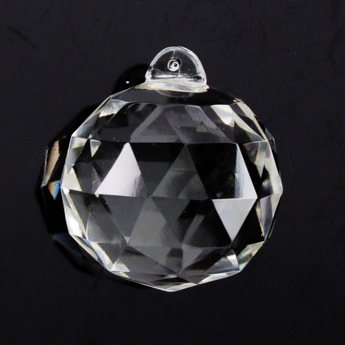 Sfera in cristallo di Boemia. Il pendente sferico ha diametro 35 mm e un occhiello in cima per l'inserimento di agganci o fili metallici.