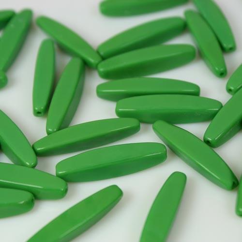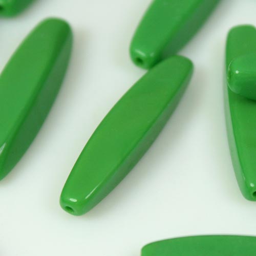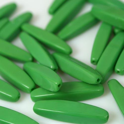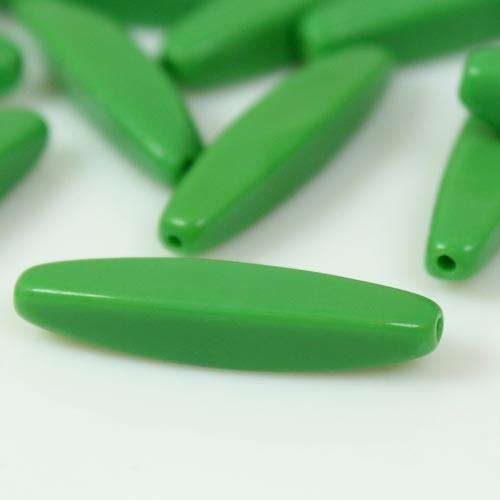 Perla allungata in pasta di vetro verde, 28 mm
