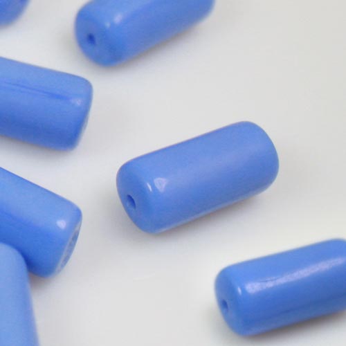 Perla cilindrica in pasta di vetro blu zaffiro, 14 mm