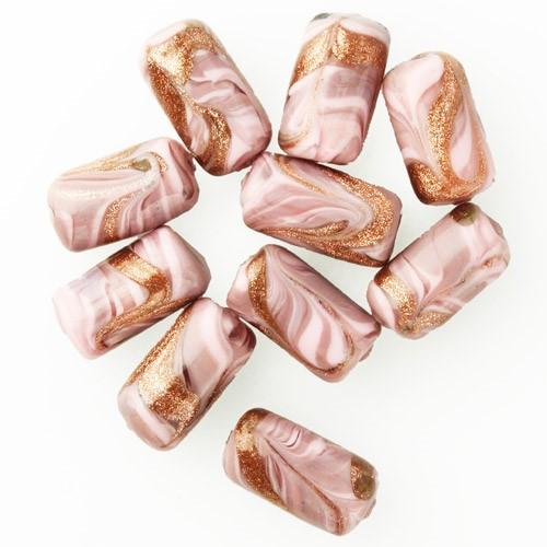 Perla di Murano cilindro Fenicio Ø9x18. Vetro bianco, rosa e avventurina. Foro passante.