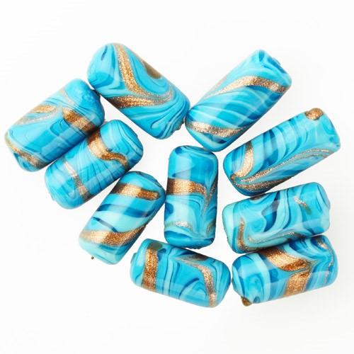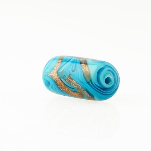 Perla di Murano cilindro Fenicio Ø9x18. Vetro bianco, turchese e avventurina. Foro passante.