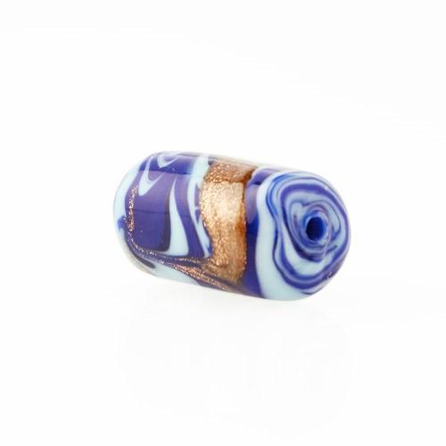 Perla di Murano cilindro Fenicio Ø9x18. Vetro blu lapis, azzurro e avventurina. Foro passante.