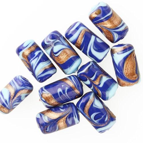 Perle in vetro artistico di Murano forma cilindrica Ø9x18 mm. Vetro blu lapis, azzurro e avventurina che impreziosisce il materiale. La decorazione presenta, inoltre, il caratteristico disegno a fasce colorate detto “Fenicio”. Con foro passante, ideale per la creazione di bigiotteria artistica. Bracciali, collane, orecchini, puoi sbizzarrirti creando i gioielli che più ti piacciono. Indossa il gioiello creato da te e rendi ogni evento un motivo per brillare. Scegli e ordina subito i tuoi pezzi.