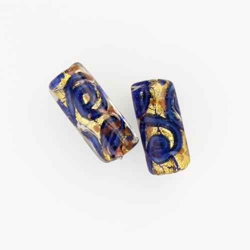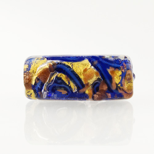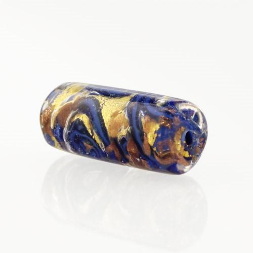Perla di Murano cilindro Medusa Ø8x20. Vetro blu, foglia oro e avventurina blu. Foro passante.