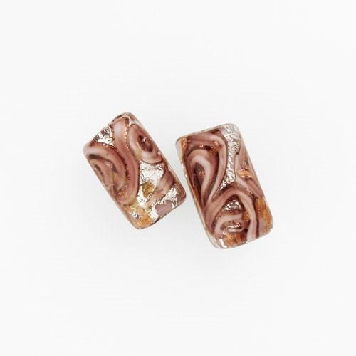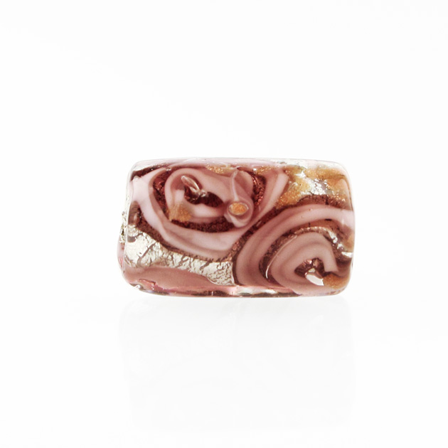 Perla di Murano cilindro Medusa Ø8x20. Vetro rosa, foglia argento e avventurina. Foro passante.