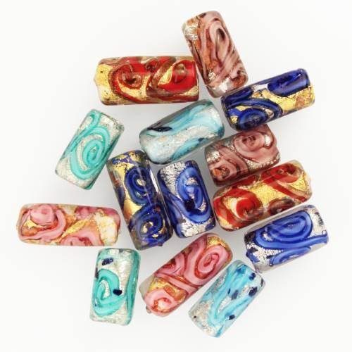 Perla rosa con foglia argento e avventurina, in vetro di Murano "made in Italy" di misura Ø8x20 mm. La decorazione presenta il caratteristico disegno a spirale detto “Medusa”. Una serie di spirali colorate avvolgono la perla e la decorano: la preziosità deriva anche dalla complessa lavorazione. Fantasie tradizionali, disegni artistici, colori brillanti: queste sono le qualità che rendono una perla prestigiosa. Con le perle preziose in vetro di Murano, potreteideare gioielli dall'inestimabile valore, che doneranno luce e vivacità al tuo look. Aprofittane subito, e scegli le forme che più ti piacciono.