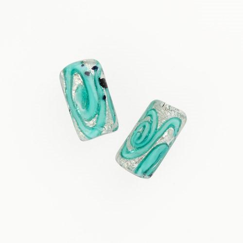 Perla di Murano cilindro Medusa Ø8x20. Vetro verde marino, foglia argento e avventurina blu. Foro passante.