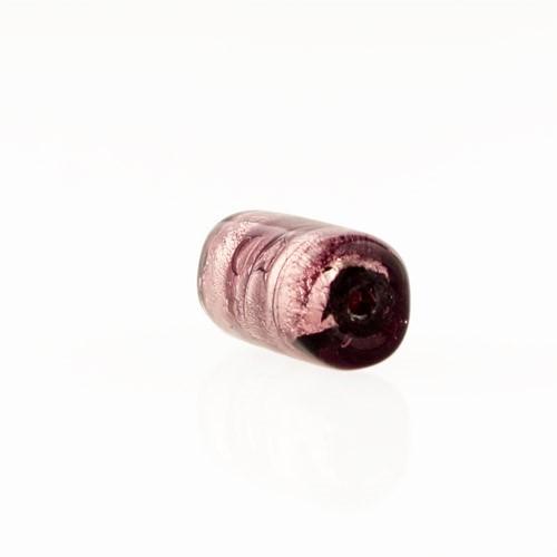 Perla di Murano cilindro Sommerso Ø8x15. Vetro ametista, foglia argento. Foro passante.