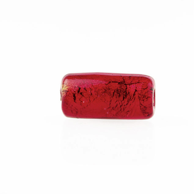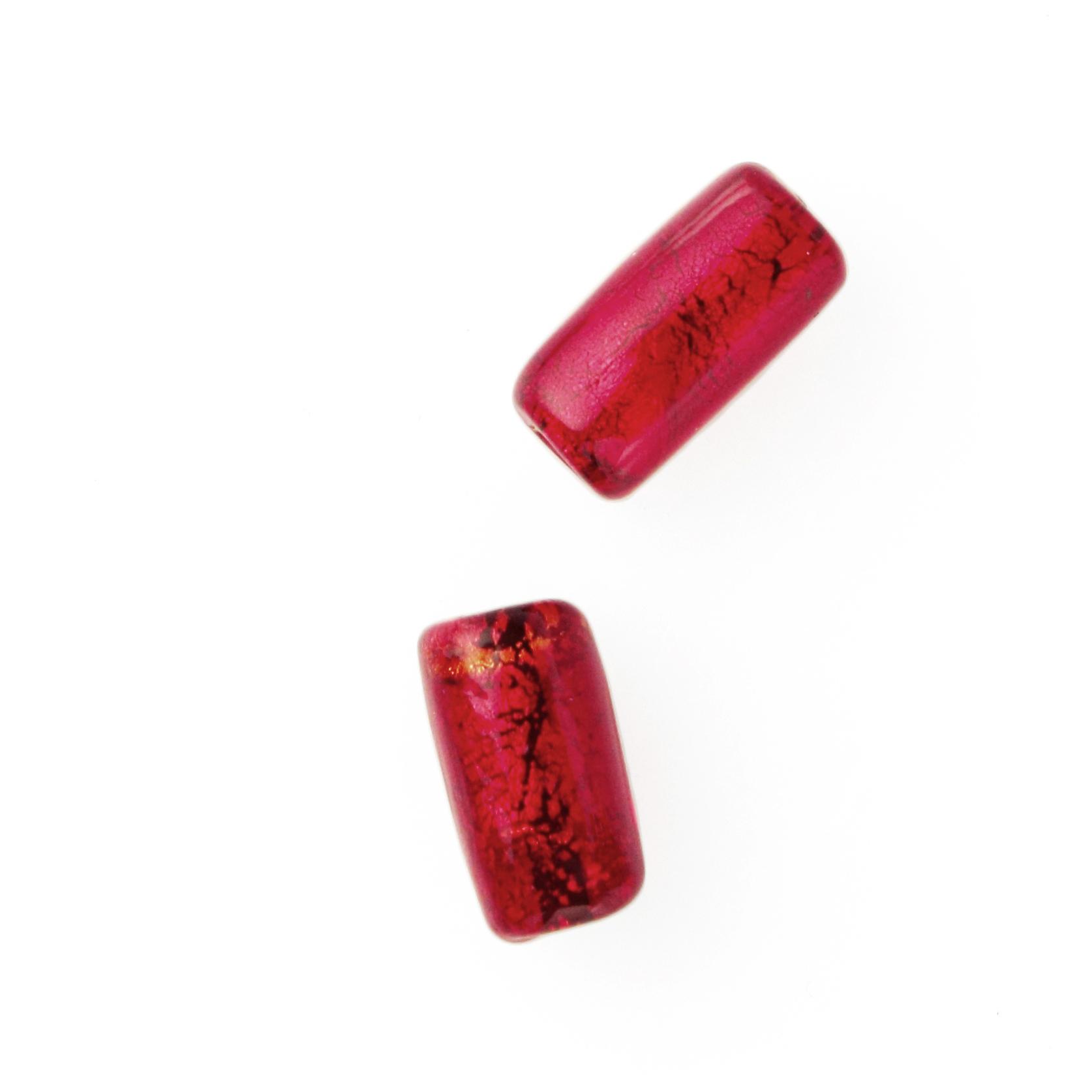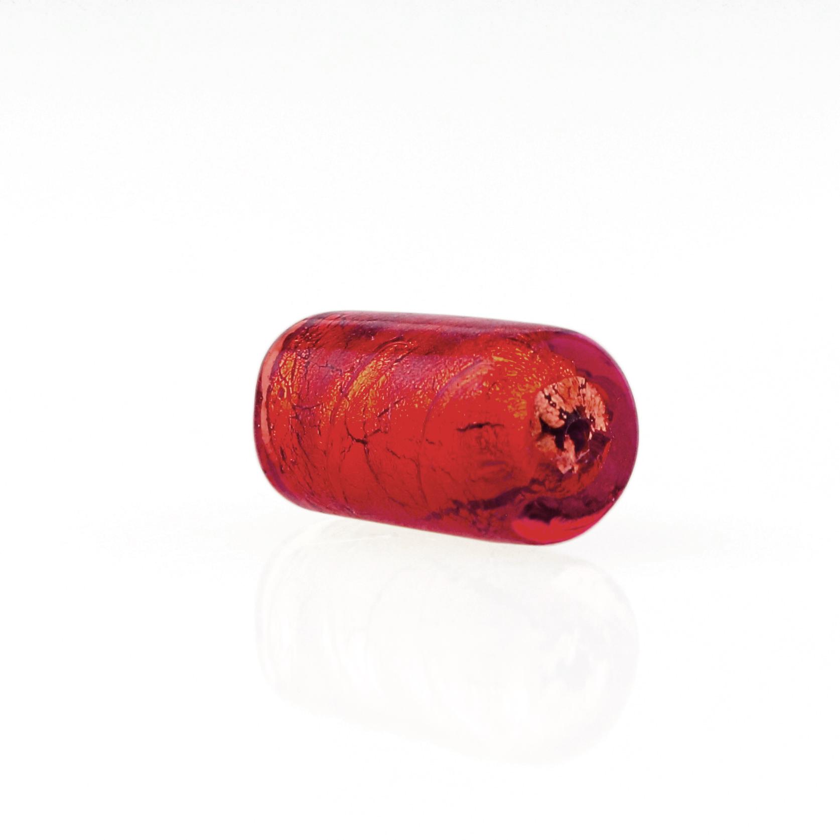 Perla di Murano cilindro Sommerso Ø8x15. Vetro rosso, foglia oro. Foro passante.