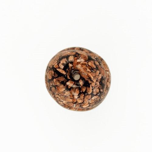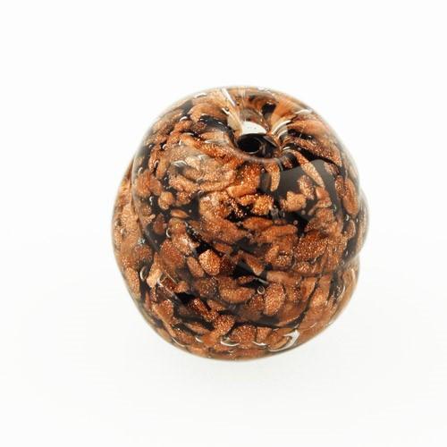 Perla di Murano melone Sommerso Ø18. Vetro nero, con avventurina. Foro passante.
